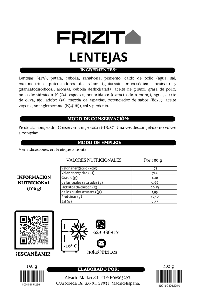 Ingredientes: Lentejas, pimentón rojo, papa/patata, zanahoria, ajo, sal.